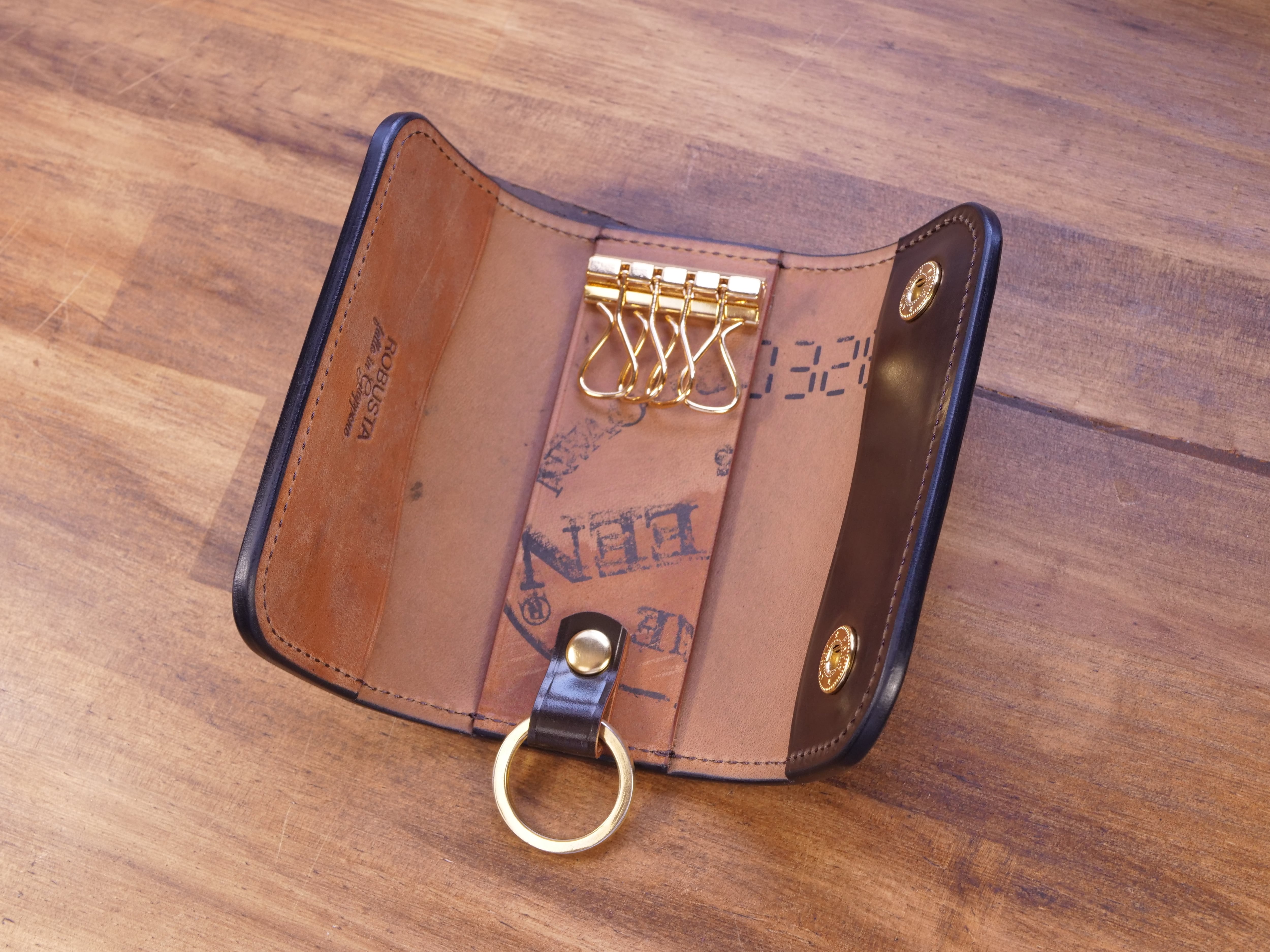 外装の革は1枚モノではなく、シェルコードバン裏面を貼り合わせ厚みを増しています。